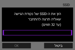 התחברו לנקודת גישה על ידי הזנת ה-SSID (או ה-ESS-ID) שלה.