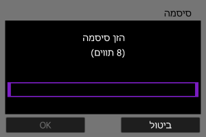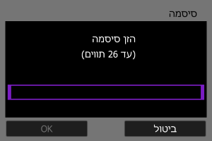 - הזינו את מפתח ההצפנה (סיסמה) שהוגדר בנקודת הגישה. לפרטים על מפתח ההצפנה שהוגדר, עיינו במדריך למשתמש של נקודת הגישה.