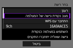 בחרו ב-[מצב נקודת גישה של המצלמה] במסך [בחר רשת].