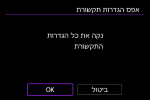 - ניתן לנקות את כל הגדרות התקשורת האלחוטית על ידי בחירה ב-[הגדרות תקשורת] עבור [הגדרות אחרות] ב-[