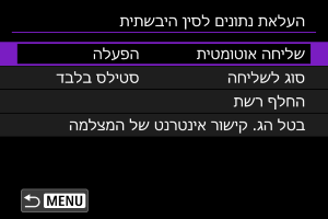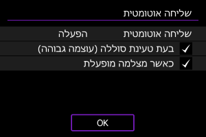 - [כאשר מצלמה מופעלת]: השליחה האוטומטית מתחילה כאשר מצלמת הווידאו מופעלת.