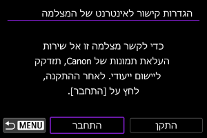 - לפרטים על אופן השימוש בשירות העלאת התמונות של Canon ובמדינות/אזורים נתמכים, עיין באתר האינטרנט של Canon לשירות העלאת התמונות (http://ciu.canon.com.cn/).
