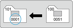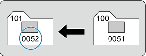 בעת החלפת הכרטיס או יצירת התיקייה, מספור הקבצים מופעל מחדש מ-0001 עבור התמונות החדשות שנשמרו. אפשרות זו שימושית אם ברצונכם לארגן תמונות לפי כרטיסים או תיקיות.