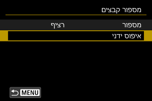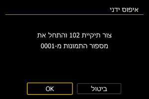 בעת איפוס ידני של מספור הקבצים, נוצרת תיקייה חדשה באופן אוטומטי ומספור הקבצים של התמונות שנשמרו בתיקייה זו מתחיל מ-0001.