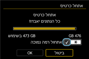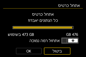 - במהלך אתחול ברמה נמוכה, ניתן לבטל את האתחול על ידי בחירה ב-[ביטול]. גם במקרה כזה, האתחול הרגיל כבר יושלם ותוכלו להשתמש בכרטיס כרגיל.