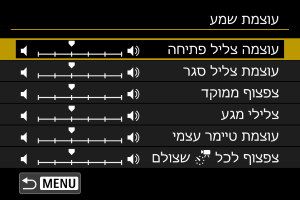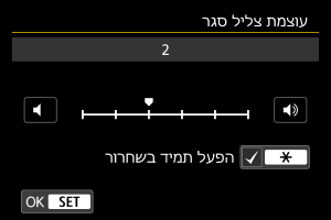 : מצב תריס], כאשר [הפעל תמיד בשחרור] נבחר בהגדרות [עוצמת צליל סגר].