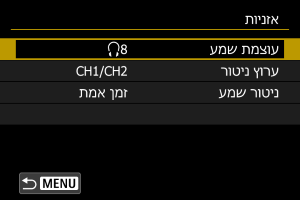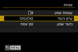 ניתן לבחור את השמע לפלט האוזניות במהלך הקלטת וידאו. כדי להפחית רעשים בהקלטת שמע, הגדירו את [הפחתת רעשי שמע] ().