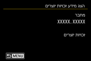 בבחירה ב-[הצג מידע זכויות יוצרים] בשלב 2, תוכלו לבדוק את הפרטים [מחבר] ו-[זכויות יוצרים] שהזנתם.