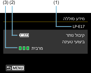 ניתן לבדוק דרך המסך את מצב הסוללה שבשימוש.