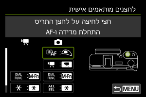 לשימוש נוח יותר במצלמה, ניתן להקצות ללחצני המצלמה פונקציות שאתם משתמשים בהן הרבה. ניתן להקצות לאותו לחצן פונקציות שונות לשימוש עבור צילום תמונות סטילס או הקלטת וידאו.