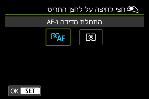 ניתן להגדיר את הפונקציות שיבוצעו על ידי חצי לחיצה על כפתור הצילום במהלך הקלטת וידאו.