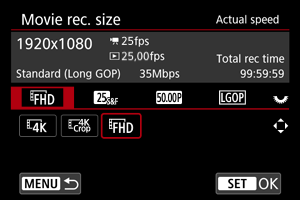 סרטי וידאו שהוקלטו באמצעות הקלטה בהילוך איטי/מהיר מופעלים בהילוך איטי או מהיר. לא מוקלט שמע. הגדר את מהירות התנועה (איטית או מהירה) (מהירות הצפייה) ב-[: Movie rec. size/גודל וידאו מוק.].