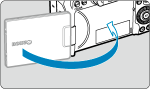 - כאשר המסך כבוי, ניתן להטות אותו למעלה או למטה או לסובב אותו כך שיפנה לנושא הצילום.