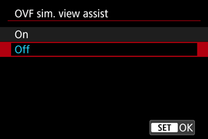 בצילום תמונות סטילס, ניתן להפעיל הדמייה של עינית ותצוגת מסך בדומה לתצוגה הטבעית הנשקפת מעינית אופטית. שימו לב שהתמונות שמוצגות כאשר תכונה זו מוגדרת במצב [On/פועל] עשויות להיות שונות מתוצאות הצילום בפועל.