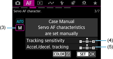 - (3) Whole area tracking Servo AF/Servo AF למעקב אזור מלא
