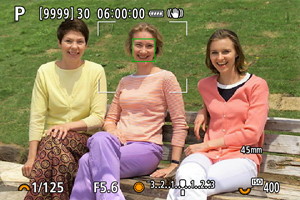 ניתן לצלם תוך התמקדות בעיניים של המצולם על ידי הגדרת [: Eye detection/זיהוי עין] לאפשרות שונה מ- [Disable/הפסקה] ().
