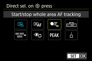 ] ובחרו ב-[Start/stop whole area AF tracking/התחל/עצור AF מעקב אזור מלא].
