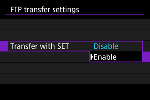 כדי להגן אוטומטית על תמונות שהועברו באמצעות FTP, יש להגדיר ל-[Enable/הפעלה] ().