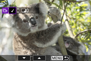 - במהלך תצוגת שלוש תמונות, סובבו את הגלגל