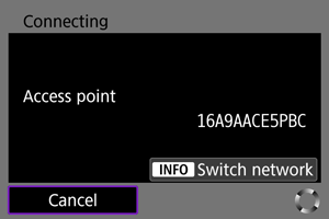 אם ההעברה נכשלת, סמל ה-Wi-Fi מהבהב זמנית. במקרה זה, המסך הבא יוצג לאחר לחיצה על הלחצן ובחירה ב-[