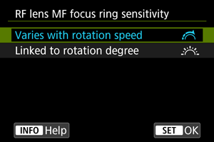 - לפרטים על העדשות שיש להן גם טבעות מיקוד וגם טבעות שליטה ועבורן המצלמה מציגה את התפריט הזה, בקרו באתר של Canon.