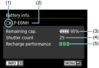 - Možete provjeriti približni preostali kapacitet odgovarajuće baterije (2) i kad je zadnji put korištena (3).