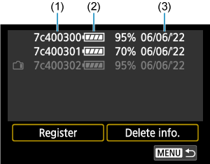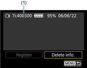 - U Registriranje baterija na fotoaparat odaberite [Delete info. / Brisanje podataka] u koraku 2.