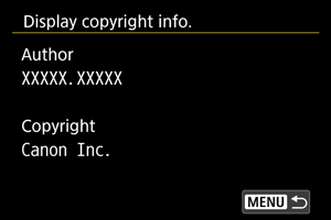 Kad u koraku 2 odaberete [Display copyright info. / Prikaz podataka o autorskim pravima], možete provjeriti unesene informacije pod [Author/Autor] i [Copyright / Autorsko pravo].