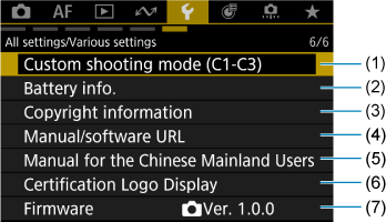 - (1) Custom shooting mode (C1-C3) / Prilagođeni način snimanja (C1-C3)