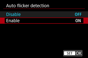 , odabrati [Anti-flicker shoot. / Snimanje pod treperavim svjetlom] i zatim pritisnuti tipku
