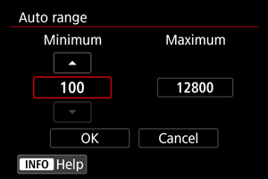 Možete podesiti automatski raspon ISO osjetljivosti za ISO Auto / Automatski ISO.