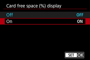 Odaberite [Card free space (%) display / Prikaz slobodnog prostora na kartici (%)].