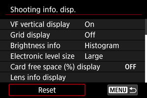 Odaberite [VF info/toggle settings / Postavke podataka u tražilu].