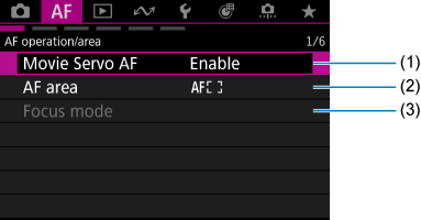 Izbornici u kartici: AF (snimanje videozapisa)