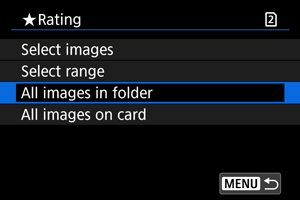 : Ocjenjivanje] odaberete [All images in folder / Sve snimke u mapi] ili [All images on card / Sve snimke na kartici], ocijenit će se sve snimke u mapi ili na kartici.