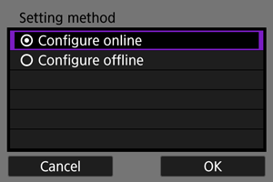 - Odaberete li [Configure offline / Vanmrežno konfiguriranje], fotoaparat će ostati odspojen s mreže nakon konfiguracije.