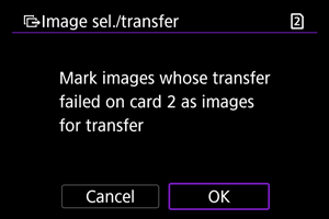 - Nakon brisanja podataka o prijenosu možete odabrati [Select images not transferred / Odabir neprenesenih snimaka] i ponovno prenijeti sve snimke s te kartice.