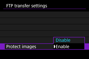 Za automatsku zaštitu snimaka prenesenih putem FTP-a podesite na [Enable/Omogućeno] ().