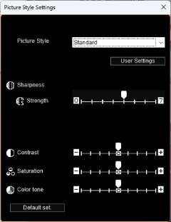 • Camera Picture Style settings changed this way are not applied to movies recorded using Canon Log gamma.