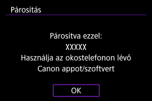 Ha egy másik okostelefont szeretne párosítani, miután már párosított egyet korábban, válassza a(z) [OK] lehetőséget a fent látható képernyőn.