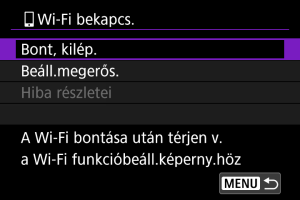 A(z) [Wi-Fi bekapcs.] képernyőn válassza a(z) [Bont, kilép.] lehetőséget.