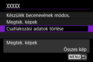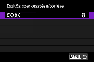 - Ha megtartja a párosítási adatokat a korábban párosított fényképezőgépekről az okostelefonján, akkor nem tudja párosítani ezzel a fényképezőgéppel. Mielőtt ismét próbálkozna a párosítással, távolítsa el a korábban párosított fényképezőgépek párosítási adatait az okostelefon Bluetooth-beállítások képernyőjén.