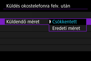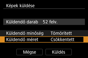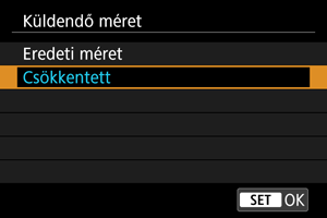 - A(z) [Küldendő méret] menüpontban választhatja ki a kép küldési méretét.