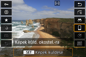 A fényképezőgépen tárolt képeket elküldheti a Bluetooth-kapcsolaton keresztül párosított (csak Androidos eszköz esetén) vagy Wi-Fi-kapcsolaton keresztül csatlakoztatott okostelefonjára.