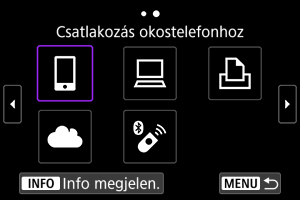 Felvételeit automatikusan is elküldheti okostelefonjára. A lépések végrehajtása előtt győződjön meg róla, hogy a fényképezőgép és az okostelefon csatlakoztatva van-e Wi-Fi-hálózaton keresztül.