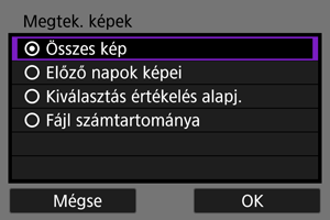 - A megtekinthető képek meghatározásához nyomja meg a(z)