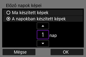 - Ha [A napokban készített képek] beállítást választja, akkor az aktuális dátum előtt legfeljebb a megadott számú nappal készült képek jeleníthetők meg. A(z)