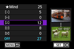 - Az értékelés típusának kiválasztásával beállítja a megtekinthető képeket.