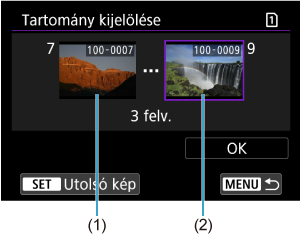 A fájlszám szerint rendezett képek közül megadhatja a megtekinthető képek tartományának első és utolsó tagját.