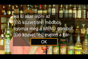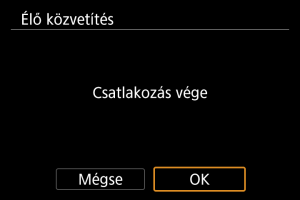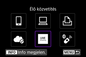 - Amint a fényképezőgép csatlakozik az image.canon szolgáltatáshoz, megjelenik a(z) [Élő közvetítés] ikon.